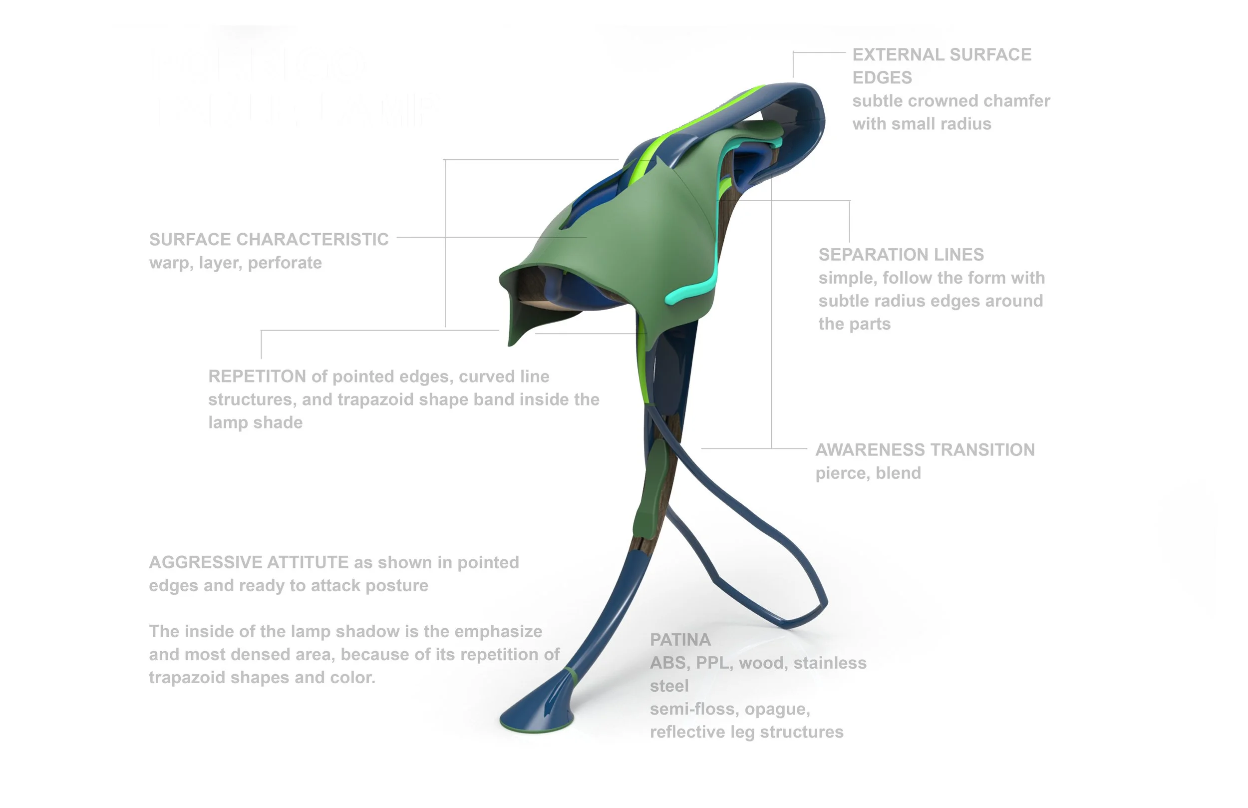 PORRIGO began with a study of diverse inspirations—from products and abstract drawings to animals and art—united under the Latin word meaning ‘to stretch, reach, and spread out.
